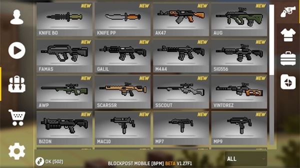 2、点击右侧的背包商店图标,这里汇集了各类武器,可根据个人习惯进行选择;